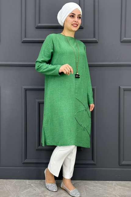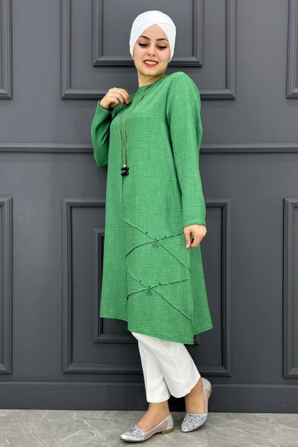 Kadın Nervür Dikim Detaylı Kolyeli Tesettür Tunik MDE24210502-080-Benetton