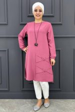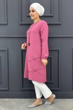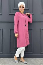 Kadın Nervür Dikim Taş Detaylı Tunik MDE24200287-045-Gül Kurusu