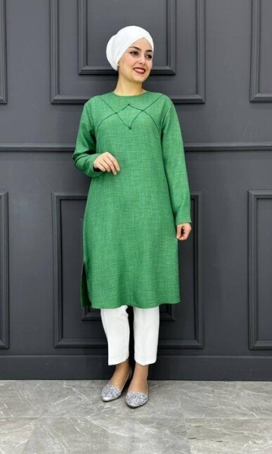 Tesettür Tunik Özellikleri: Yeni sezon tunik modeli. Biye ve taş detayları ile hareketlendirilmiş bir tunik modelimiz 2 / 3/ 4 / 5 beden aralığındadır. Gündelik kullanıma, özel günlerinize uygun bir üründür. Ürün en çok tercih edilen tunik modelleri arasındadır. Ürünün birbirinden farklı renk seçenekleri mevcuttur. Kumaş Özelliği: Keten kumaştan imal edilmiştir.Dört mevsim kullanılabilir kumaştır. Ürün renginde konsept çekimlerinden dolayı farklılık olabilir.