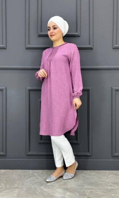 Kadın Nervür Ve Taş Detaylı Tesettür Tuni kMDE24200250-080-GÜL KURUSU