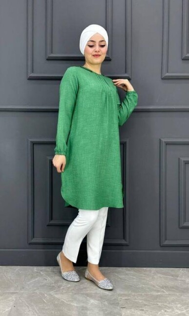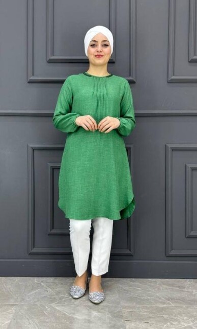 Tesettür Tunik Özellikleri: Yeni sezon tunik modeli. Tunik modelimizin boyun kısımında zincir detayı bulunmaktadır nervür taşlar ile süslenmiştir.  Ürünümüz  M / L / XL / XXL  beden aralığındadır. Gündelik kullanıma, özel günlerinize uygun bir üründür. Ürün en çok tercih edilen tunik modelleri arasındadır. Ürünün birbirinden farklı renk seçenekleri mevcuttur. Kumaş Özelliği: Keten kumaştan imal edilmiştir.Dört mevsim kullanılabilir kumaştır. Ürün renginde konsept çekimlerinden dolayı farklılık olabilir.