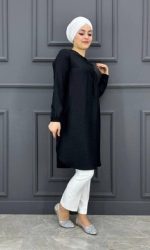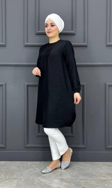 Kadın Nervür Ve Taş Detaylı Tesettür Tunik MDE24200250-080-SİYAH