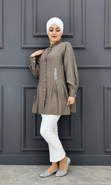 Tesettür Tunik Özellikleri: Yeni sezon tunik modeli. Yaprak detayı ile hareketlendirilmiş gömlek tunik modelimiz 38 / 40 / 42 / 44 beden aralığındadır. Gündelik kullanıma, özel günlerinize uygun bir üründür. Ürün en çok tercih edilen tunik modelleri arasındadır. Ürünün birbirinden farklı renk seçenekleri mevcuttur. Kumaş Özelliği: Dört mevsim kullanılabilir kumaştır. Ürün renginde konsept çekimlerinden dolayı farklılık olabilir.
