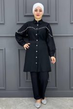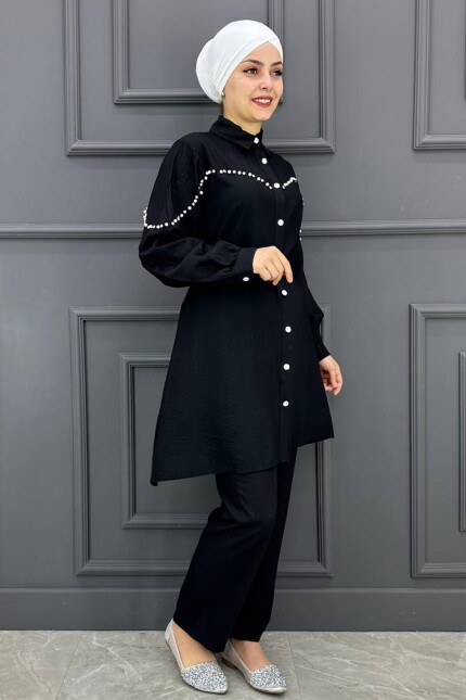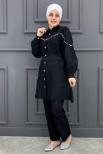 Kadın Önü İnci Ve Taşlı İkili Takım KSR-7591-SİYAH