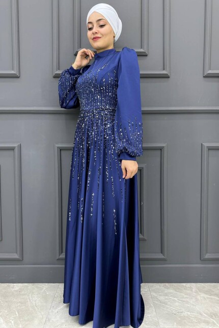 Kadın Önü Kolu Taşlı Ve Pullu Abiye 10-İNDİGO