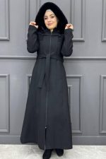 Tesettür Kaban Özellikleri: Fermuar ve cep detaylı uzun tesettür kapitone tüylü kaşe kaban, hem spor hemde şık kombilerinize uyum sağlayacaktır. Modelimizin bel kısmında lastijk kemer detayı bulunmaktadır.