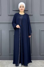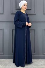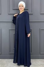 Kadın Önü Taşlı Elbise SNFN4052-LACİVERT