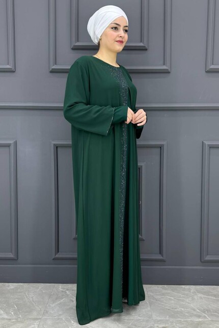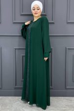 Kadın Önü Taşlı Elbise SNFN4052-ZÜMRÜT YEŞİLİ
