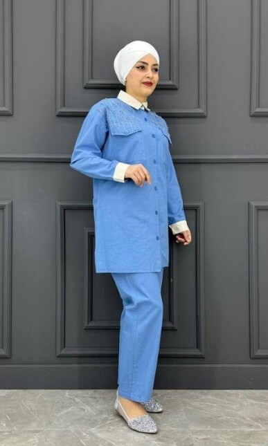Kadın Önü Taşlı İkili Takım YRN1940-MAVİ