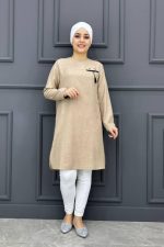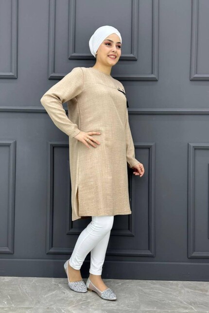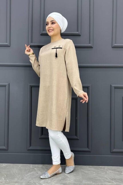 Kadın Püskül Ve Kuş Gözü Aksesuarlı Tesettür Tunik MDE24200216-080-Bej