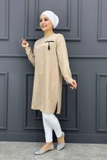 Kadın Taş Ve Düğme Tesettür Tunik MDE24200211-080-Kahverengi