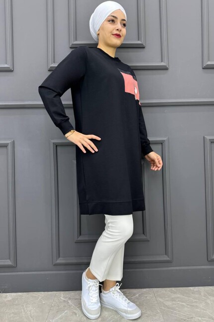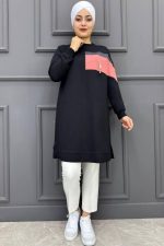 Kadın Salanatı Aksesuar Detaylı Tesettür Tunik 48-SİYAH
