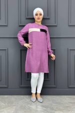 Kadın Sallantı Aksesuarlı Kombin TesettürTunik MDE24200233-080-Gül Kurusu