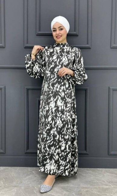 Kadın Simli Balon Elbise KSR-6901-SİYAH