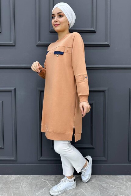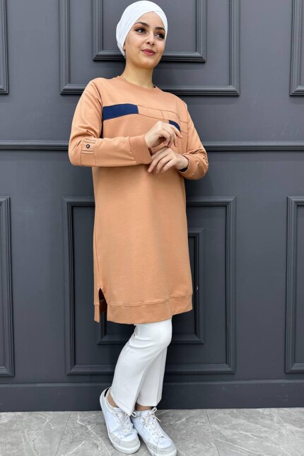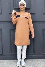 Kadın Taş Detaylı Garnili Tesettür Tunik 70-SÜTLÜ KAHVE