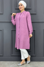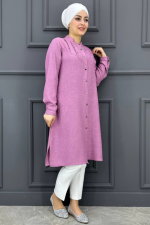 Kadın Taş Detaylı Hakim Yaka Tesettür Gömlek MDE24210521-080-Gül Kurusu