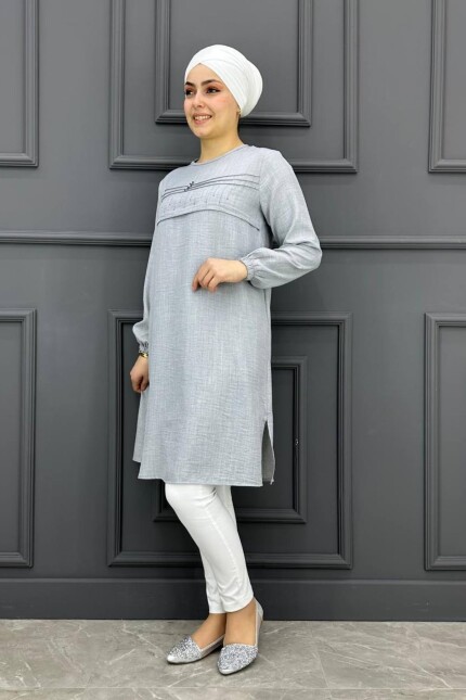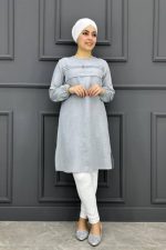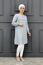 Kadın Taş Ve Düğme Tesettür Tunik MDE24200211-080-Gri