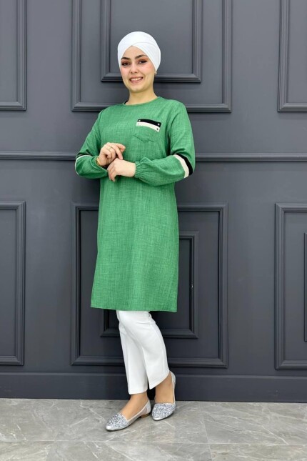 Tesettür Tunik Özellikleri: Yeni sezon tunik modeli. Tunik modelimizin bileği lastikli ve cep kısımında şerit ve nervür ile renklendirilmiştir. Ürünümüz M / L / XL / XXL beden aralığındadır. Gündelik kullanıma, özel günlerinize uygun bir üründür. Ürün en çok tercih edilen tunik modelleri arasındadır. Ürünün birbirinden farklı renk seçenekleri mevcuttur. Kumaş Özelliği: Keten kumaştan imal edilmiştir.Dört mevsim kullanılabilir kumaştır. Ürün renginde konsept çekimlerinden dolayı farklılık olabilir. Modelin ölçüleri; Boy: 169 cm Göğüs: 99 cm, Bel: 84, Basen:113 cm, Kilo: 70-72 kg. (Modelin üzerindeki ürün L bedendir).