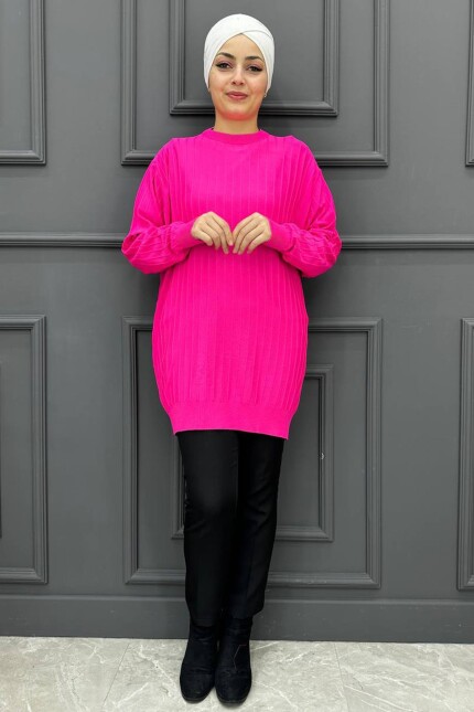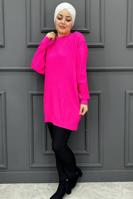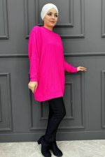 Kadın Tek Çizgi Desenli Tunik 99-FUŞYA
