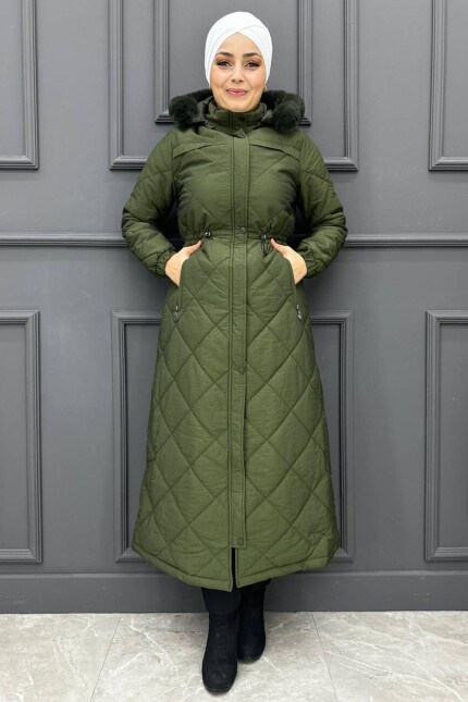 Kadın Uzun Bel Bağcıklı Mont 157-HAKİ