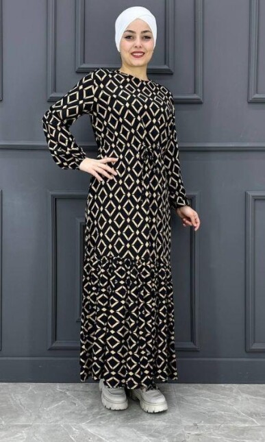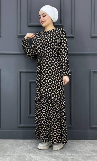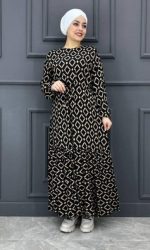 Kadın Karışık Desenli Şifon Elbise BYRV2024-7006-SİYAH