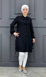 “Kadın Yaka Bağlamalı Yandan Fırfırlı Tesettür Gömlek PFC-1539-SİYAH” için yorum yapan ilk kişi siz olun Yanıtı iptal et