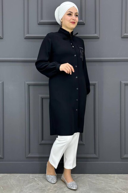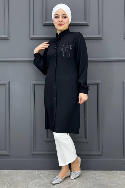 Kadın Yaka Piliseli Bağcıklı Gömlek PFC-1520-SİYAH