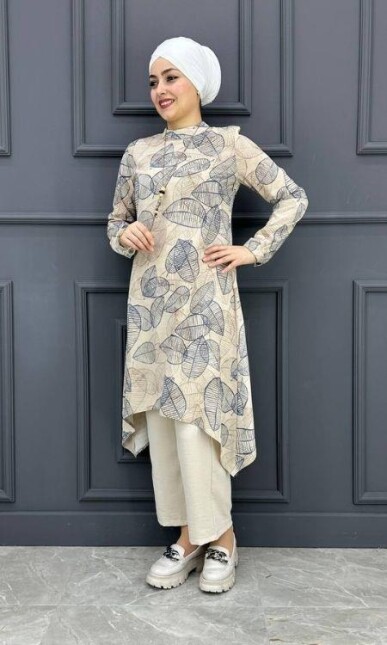Tesettür Takım Özellikleri: Yeni sezon takım modeli. Takım modelimiz de kemer detayı mevcuttur. Tunik kumaşı basma kumaş olup çizgi desenleri ile hareketlendirilmiştir. Kollar balon kol ve kol uçları lastikli muhteşem bir ikili takım modelidir.  Gündelik kullanıma, özel günlerinize uygun bir üründür. Ürün en çok tercih edilen takım modelleri arasındadır. Ürünün birbirinden farklı renk seçenekleri mevcuttur. Kumaş Özelliği: Keten kumaştan imal edilmiştir.Dört mevsim kullanılabilir kumaştır. Ürün renginde konsept çekimlerinden dolayı farklılık olabilir.