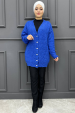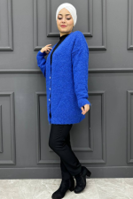 Kadın Yün Düz Hırka 260-İNDİGO