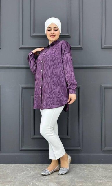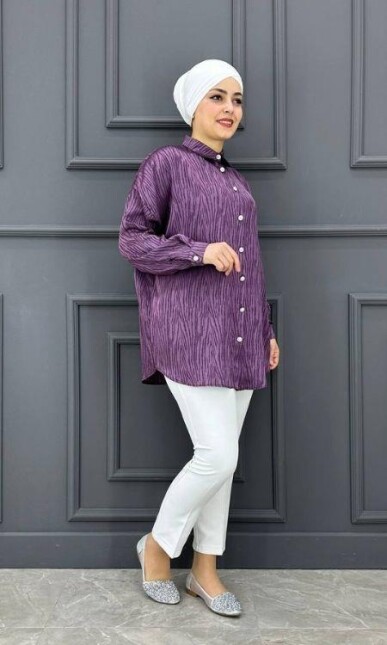 Kadın Zebra Desen Yarasa Kol Gömlek EYLL1600-MÜRDÜM