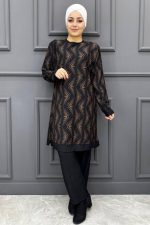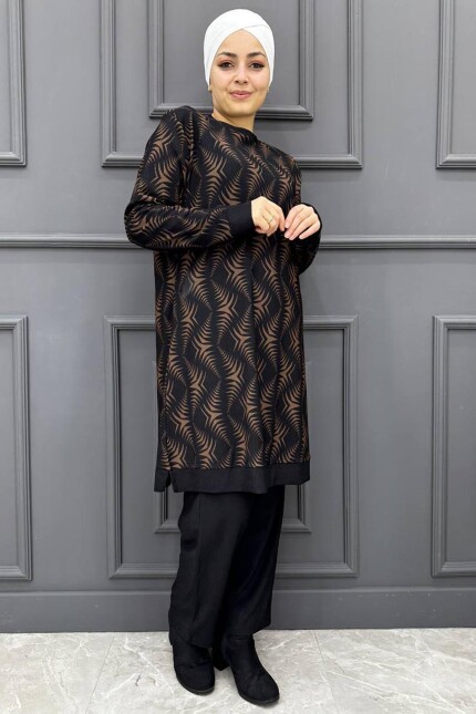 Kadın Zigzag Desenli İkili Takım ESLY24K-1004-KAHVERENGİ